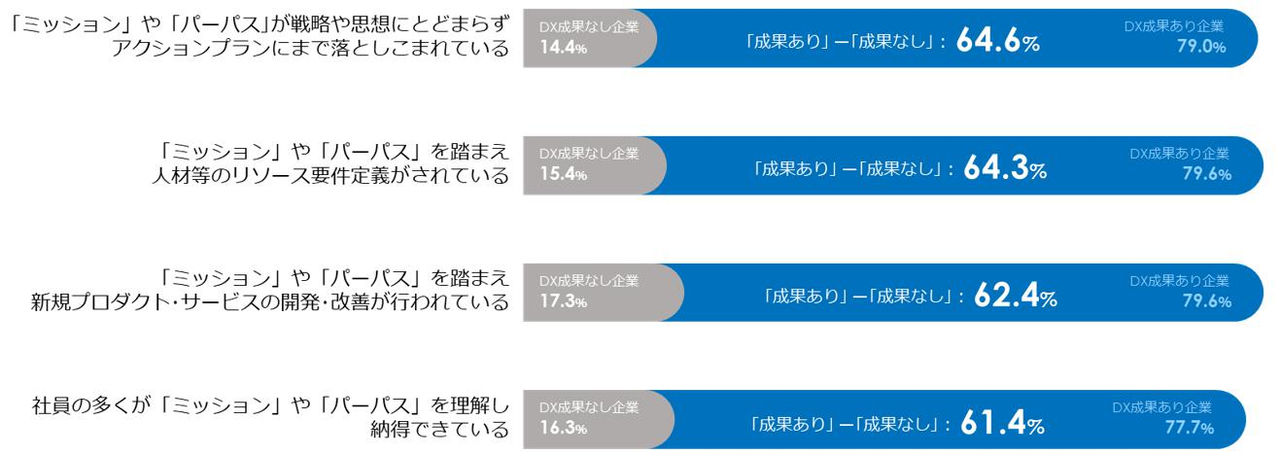 ④ 「ミッション・パーパス」の具体化/実体化が進展している企業ほどDXの成果が出ている