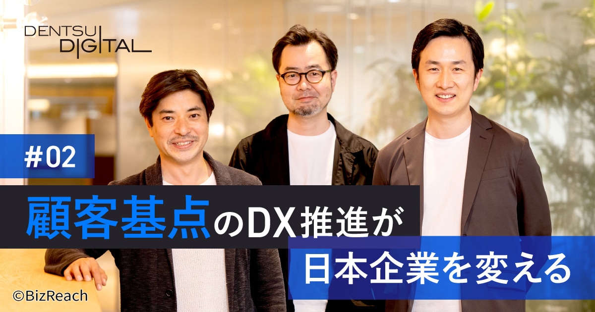 コンサルティング、事業開発、実行支援を統合したソリューション提供を強みとする、デジタルマーケティングのリーディングカンパニー、電通デジタル。CXトランスフォーメーション部門では、顧客体験基点のDX(デジタルトランスフォーメーション)をミッションに、企業改革を推進しています。部門が担う役割やその魅力、具体的なプロジェクトについて、同部門をリードする部門長、事業部長、コンサルタントの3名にお話を伺いました。