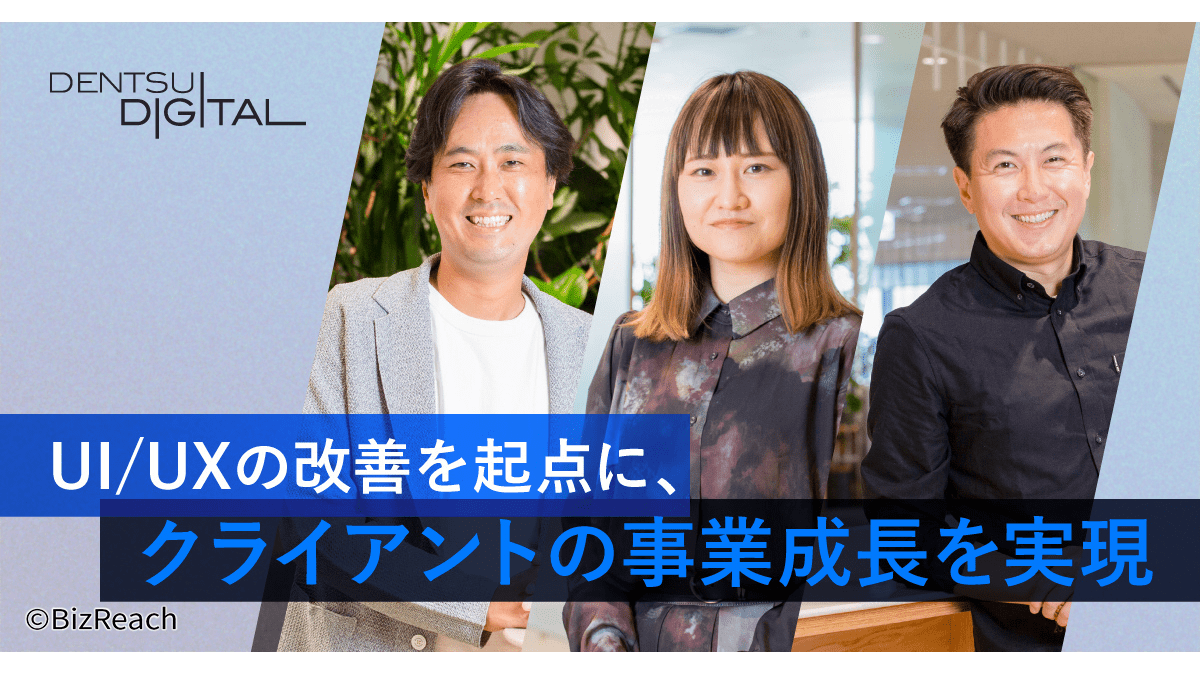 電通デジタルのUI/UXコンサルタントやデザイナーとして働く魅力や仕事のやりがいについて、3名にお話を伺いました。