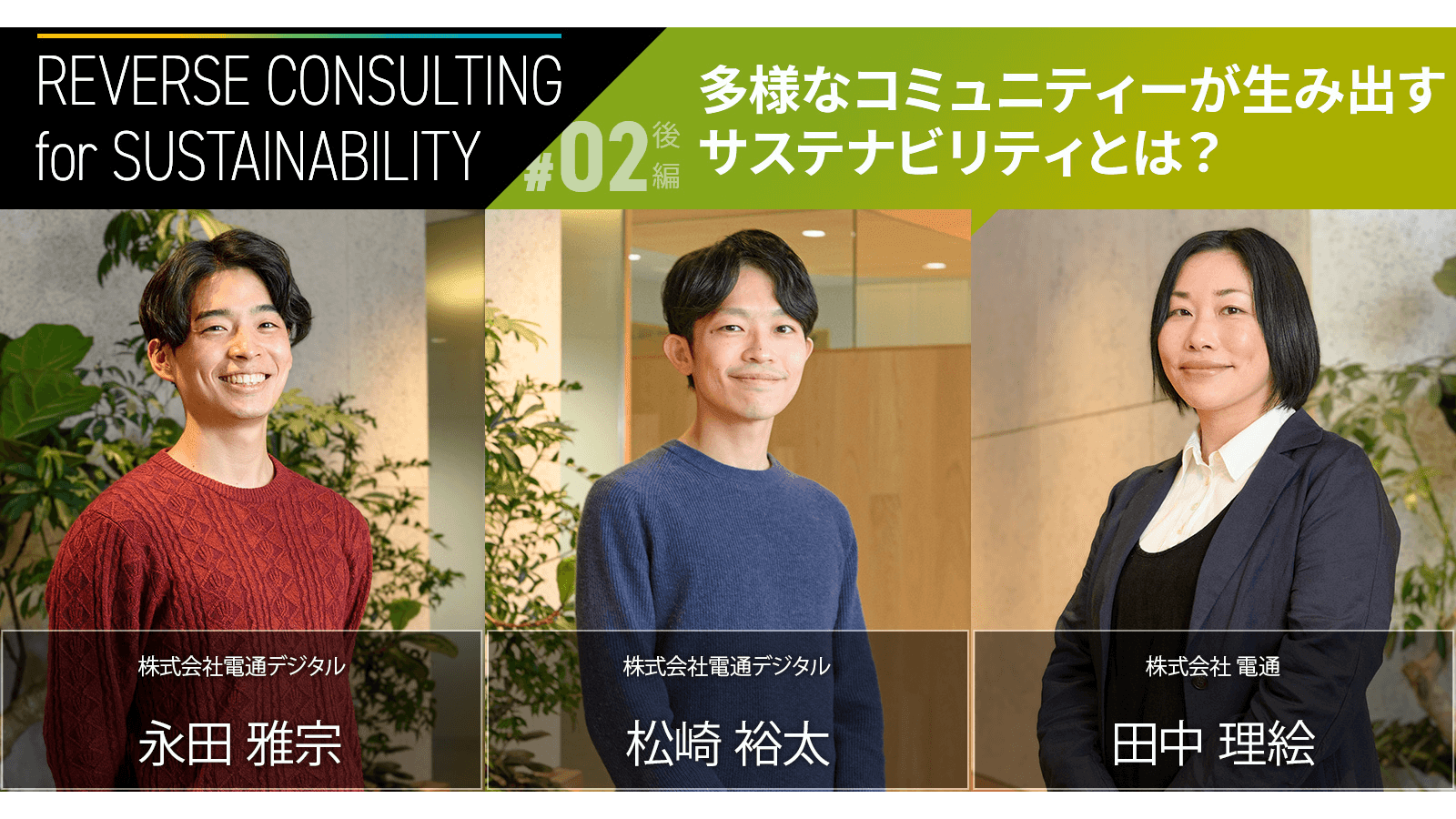 Z世代と共に企業のサステナビリティを推し進めるサービス「REVERSE CONSULTING for SUSTAINABILITY」をリリース。同サービスが掲げる今後の展望などについて、電通デジタル社員3人が語り合いました。