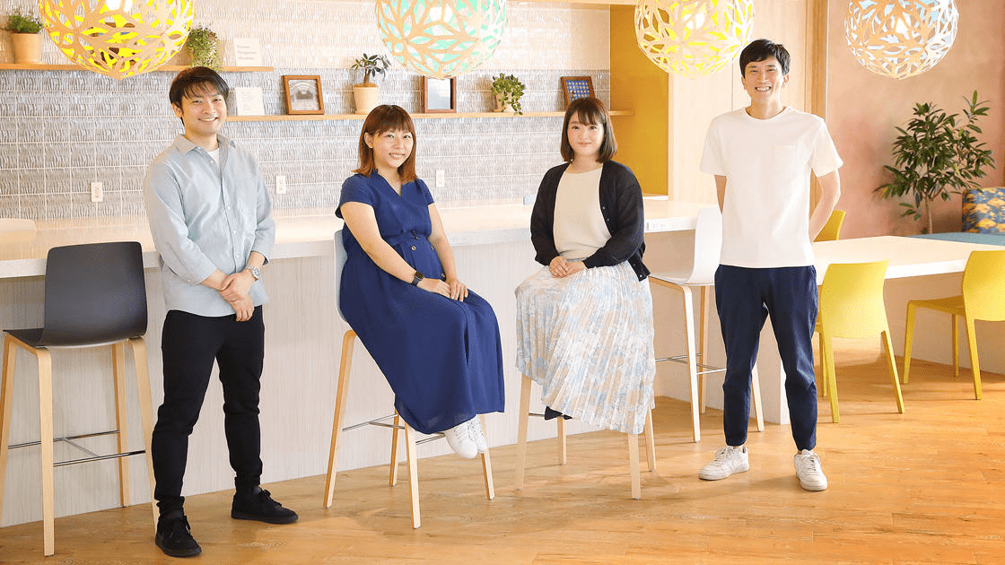 先輩社員たちが内定者に向けて社内の情報を発信する「ウェルカムプロジェクト」。発足の背景や目的、内容、成果などについて、人事担当、プロジェクトメンバーから2人、内定者(現23新卒社員)の2人に話を聞きました。