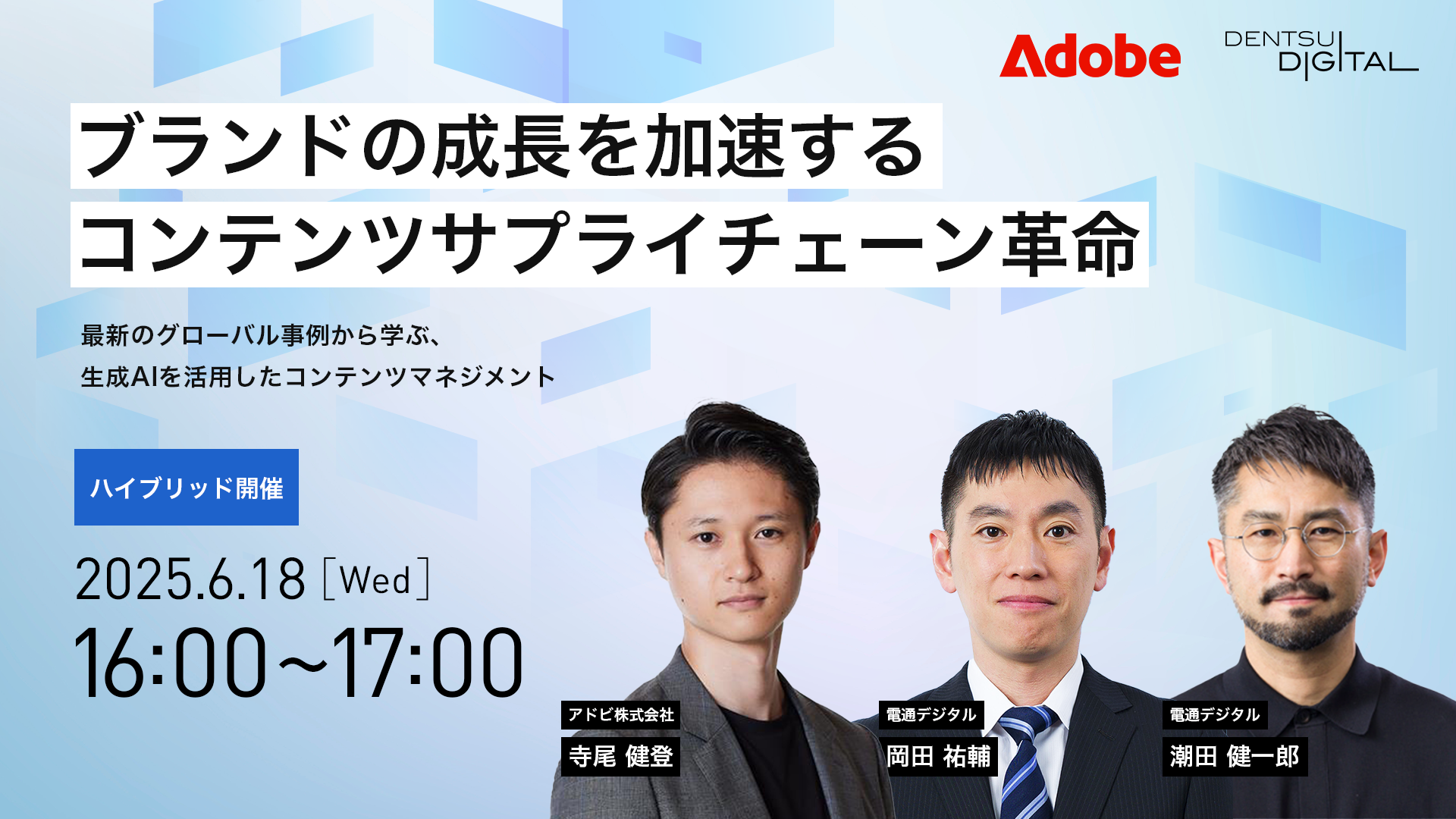 生成AIを用いた最新ソリューションの導入事例や業務効率化、パーソナライズ手法、海外企業の成功事例など、実業務にすぐに役立てられる具体的な知見をご紹介します。企業のブランド価値を高めたい方、コンテンツ制作フローに非効率さを感じている方、AIや新ツールの最適活用方法が知りたい方に、新たなヒントや解決策をご提供します。ぜひご参加ください。