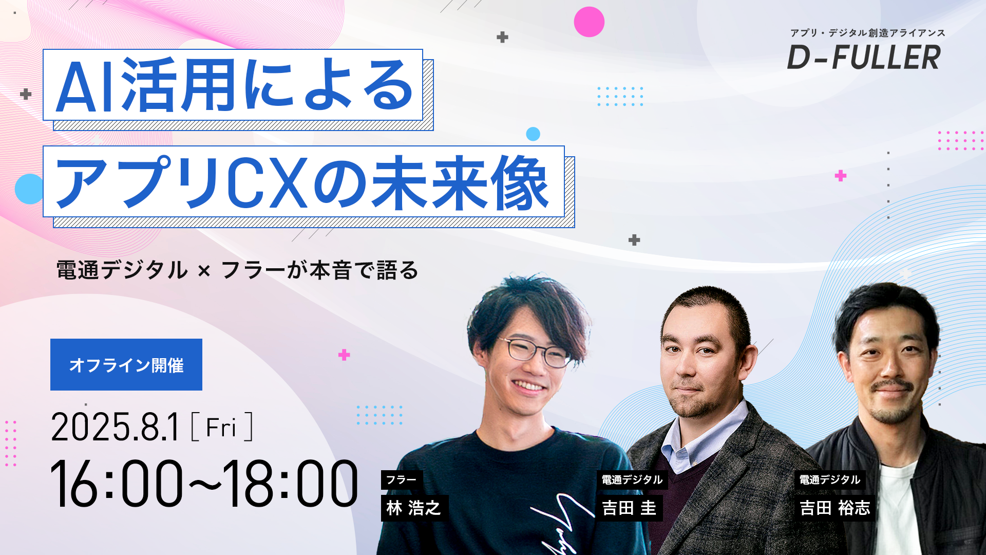 本セミナーでは、AI×アプリの進化の潮流を、ユーザー体験と企画開発の両軸から明らかにしていきます。CXプランニング×AI活用を推進しているデジタルマーケティングのプロである株式会社電通デジタルと、モバイルアプリ開発のプロであるフラー株式会社の対話を通じて、AI×アプリの現在地と未来像を知って頂くためのヒントをご提供します。