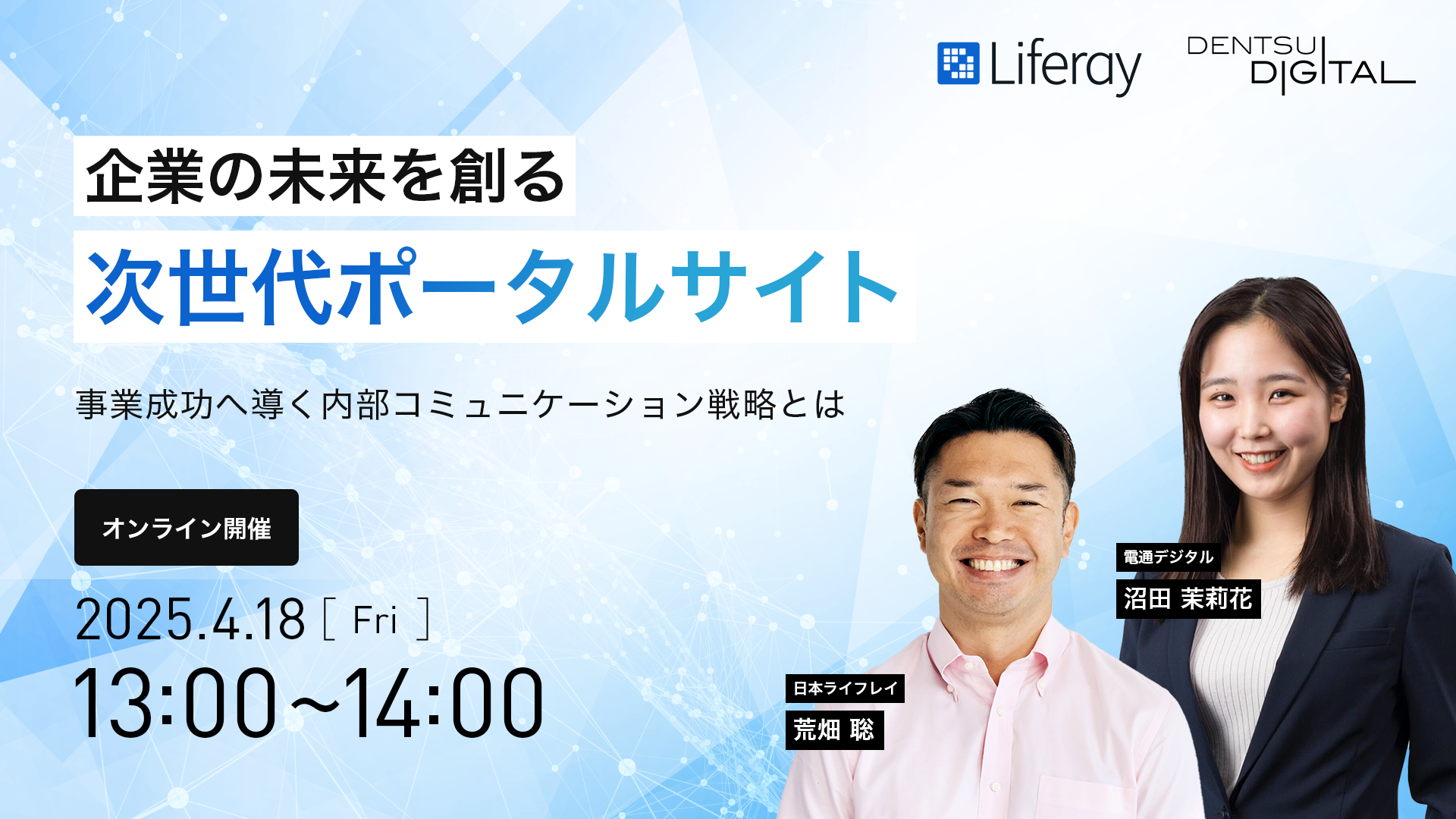 本セミナーでは、企業の事業成功のカギを握るポータルサイトの活用方法について、事例を交えながらご紹介します。また、ポータルサイト導入の際に直面する様々な課題に対し、どのようなアプローチで解決することができるのか、柔軟なアーキテクチャと高いカスタマイズ性を誇るCMS「Liferay DXP」を提供する日本ライフレイ株式会社と電通デジタルが詳しく解説します。