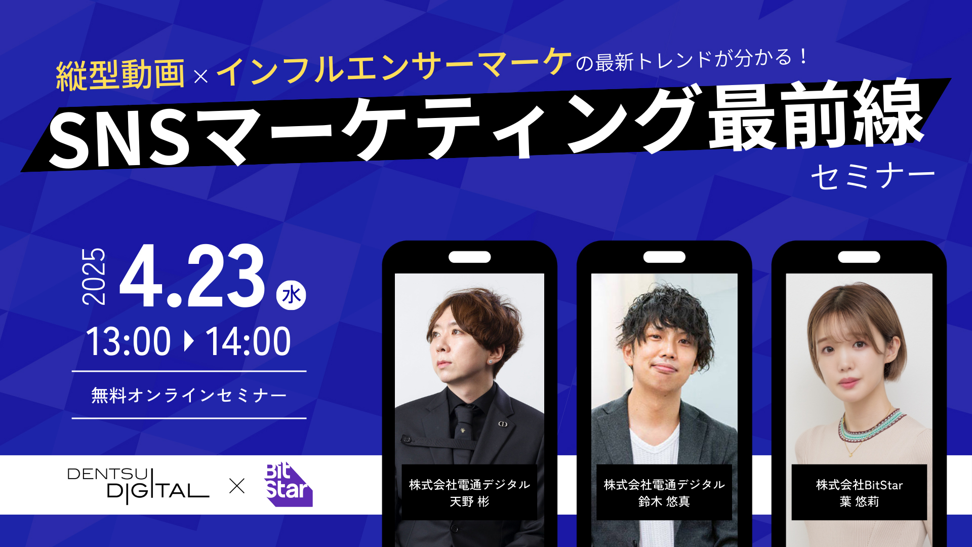 縦型動画×インフルエンサーマーケティングにおける最新のトレンドやその活用方法を、SNSマーケティング全体の総合支援を行う電通デジタルと動画クリエイターを独自データとテクノロジーで支援する 株式会社BitStarが解説します。