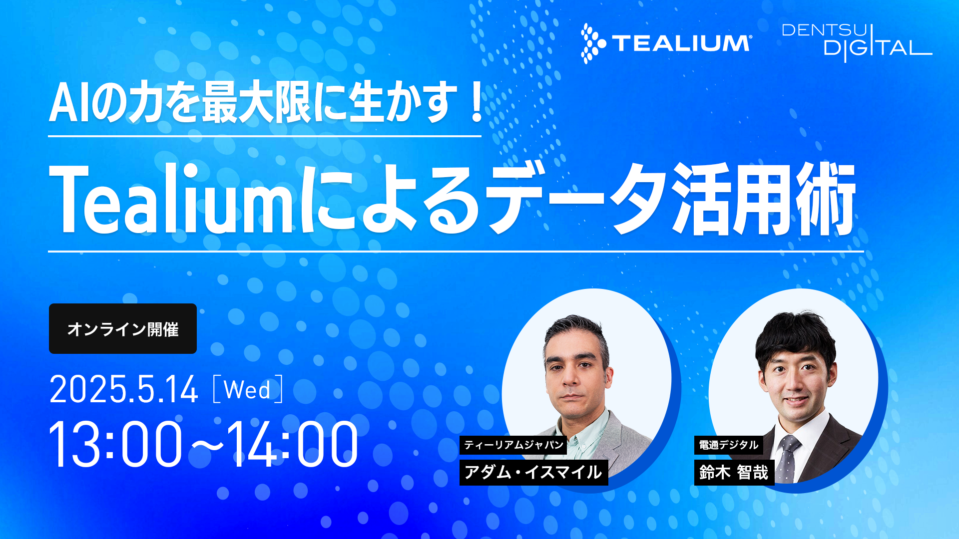 本セミナーでは、カスタマーデータプラットフォームであるTealiumを用いてAIソリューションを最大限生かすための事例をご紹介します。またAIの精度を向上させる上で重要な要素となる、連携する様々なデータの統合や正規化、即時性の確保などについて、陥りやすい課題と解決のヒントを解説します。