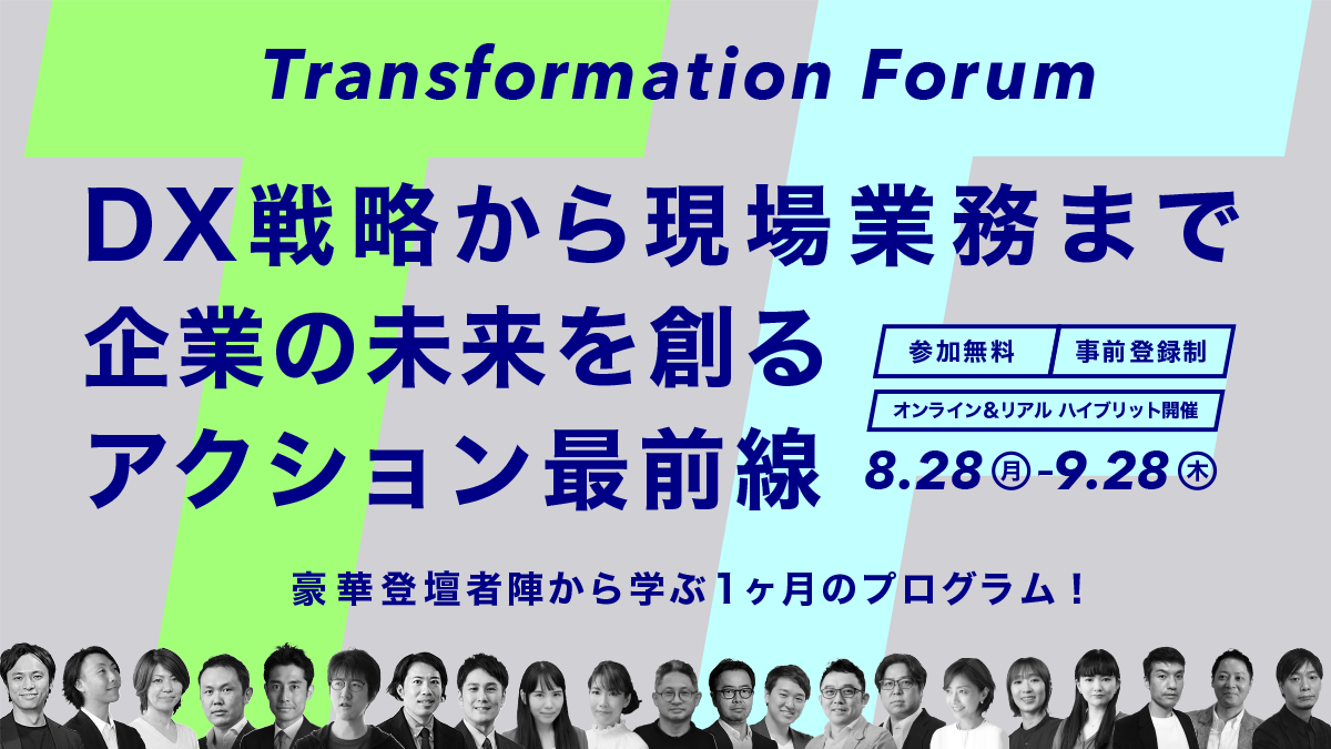 「Transformation Forum」は、企業の変革を担うリーダーに寄り添い、企業の両利き経営(既存事業の深化×新規事業の創造)の推進に必要な活動を「経営/マネジメント層」・「DX推進リーダー」それぞれの視点から体系的に学べるプログラムです。