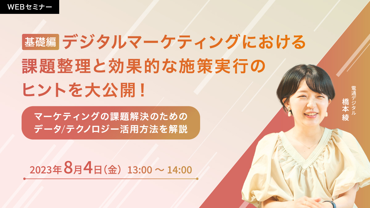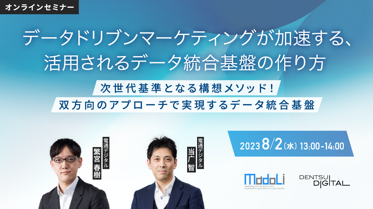 本セミナーでは、データ統合基盤の構想から運用まで、一気通貫で企業のデータドリブンマーケティングを支援してきた電通デジタル流の、迅速かつ包括的な構想策定の進め方、考え方を解説します。