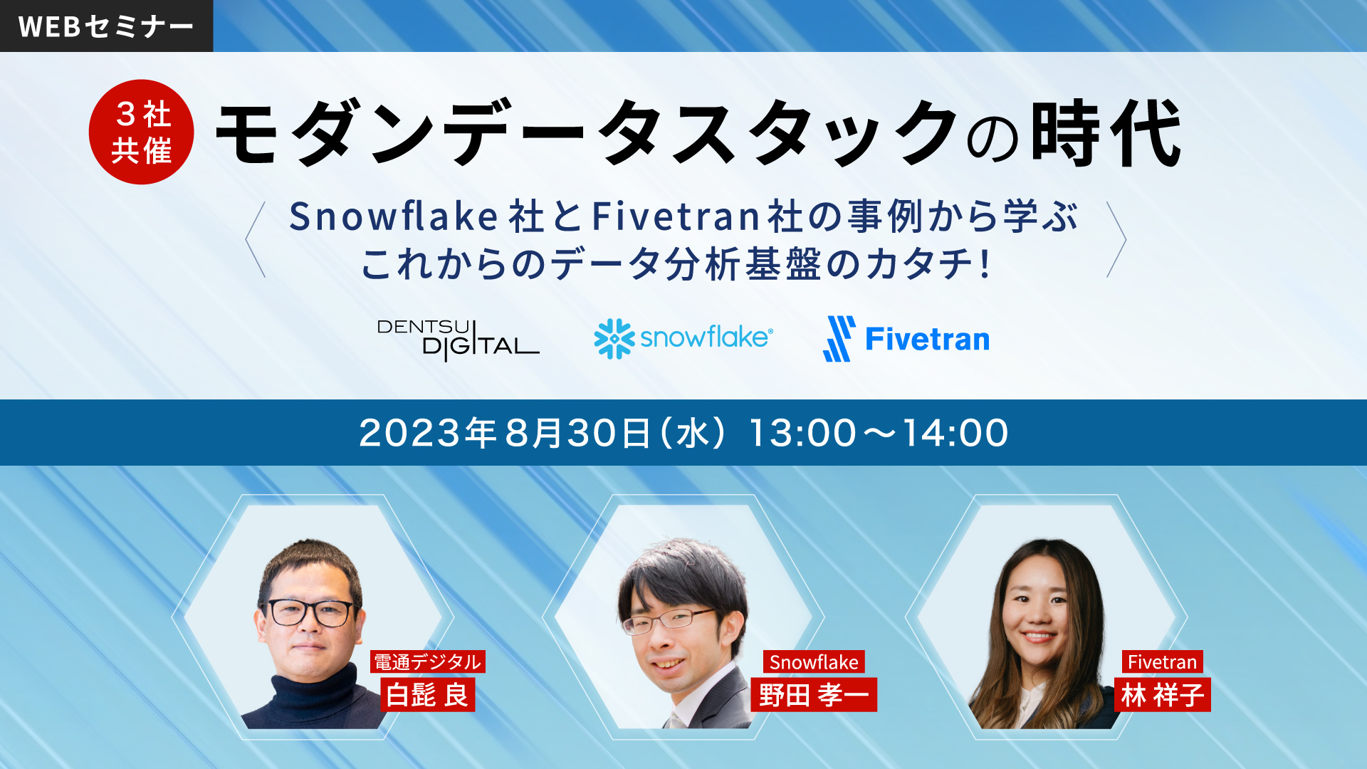 本セミナーでは、Snowflake社とFivetran社の顧客事例からモダンデータスタックの利点や実際の導入効果を説明し、データ基盤の構築・運用の課題解決のヒントを提供します。また、モダンデータスタックを実現させる電通デジタルのソリューションとそれを支えるSnowflakeの技術をご紹介します。