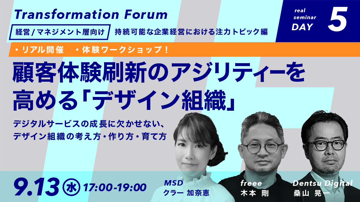 freee株式会社とMSD株式会社のデザイン組織のリーダーをお招きし、デザインを経営に活かすための戦略から、組織風土づくり、人材育成、プロセス改善まで、様々な切り口から議論・考察します。