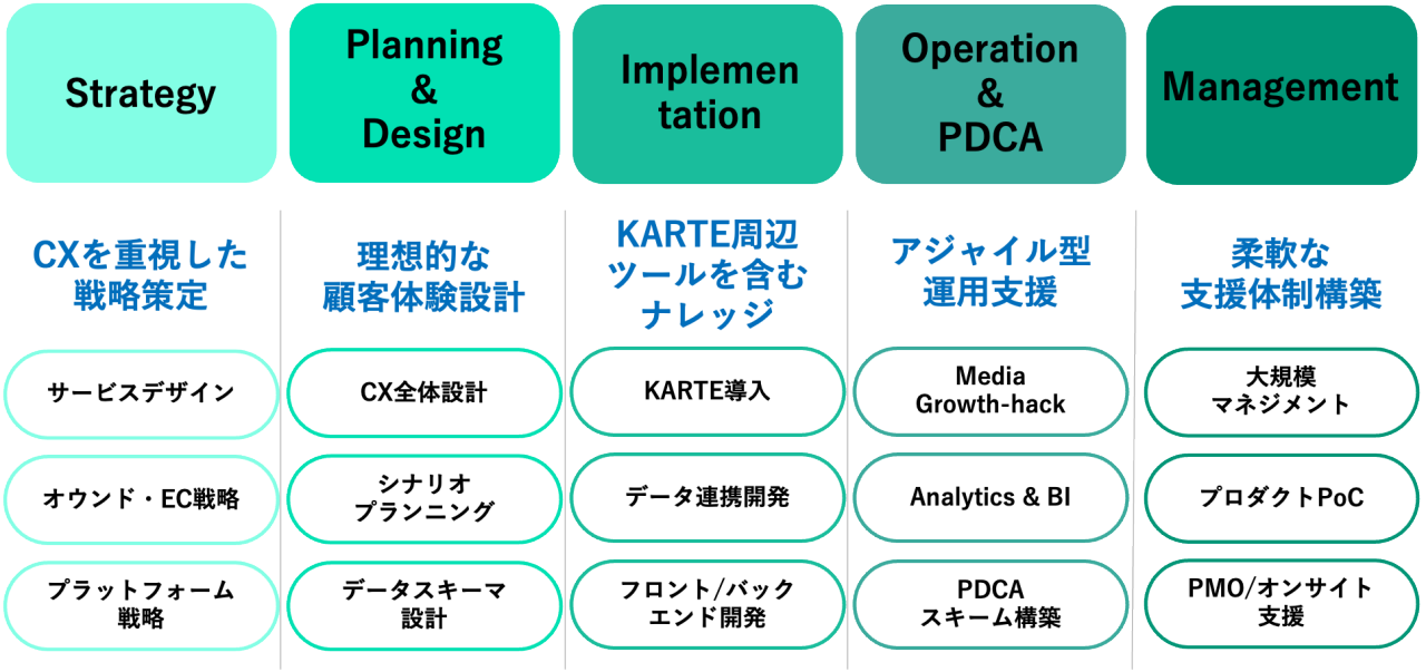 KARTEの強みを最大限に活用しクライアント企業のCX変革に貢献します