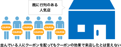 例えるとすれば、既に行列のできている人気店で、行列に並んでいる人にクーポン券を配って、クーポン券によって売り上げが上がりました、とするような状況となり、このクーポン券は、需要創造にはあたりません。リリターゲティング広告でも同様の状況になってはいないでしょうか。
