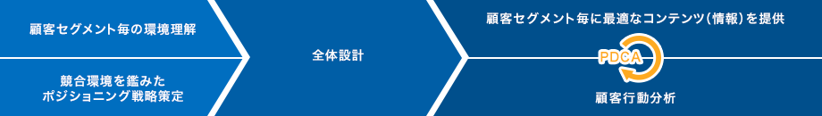 オウンドメディアを広義にとらえ、顧客体験のシナリオを設計。顧客の属性・行動データ双方を分析し、ニーズの発生したタイミングで最適なコミュニケーションを行えるプランニングを策定し、コンテンツに落とし込みます。